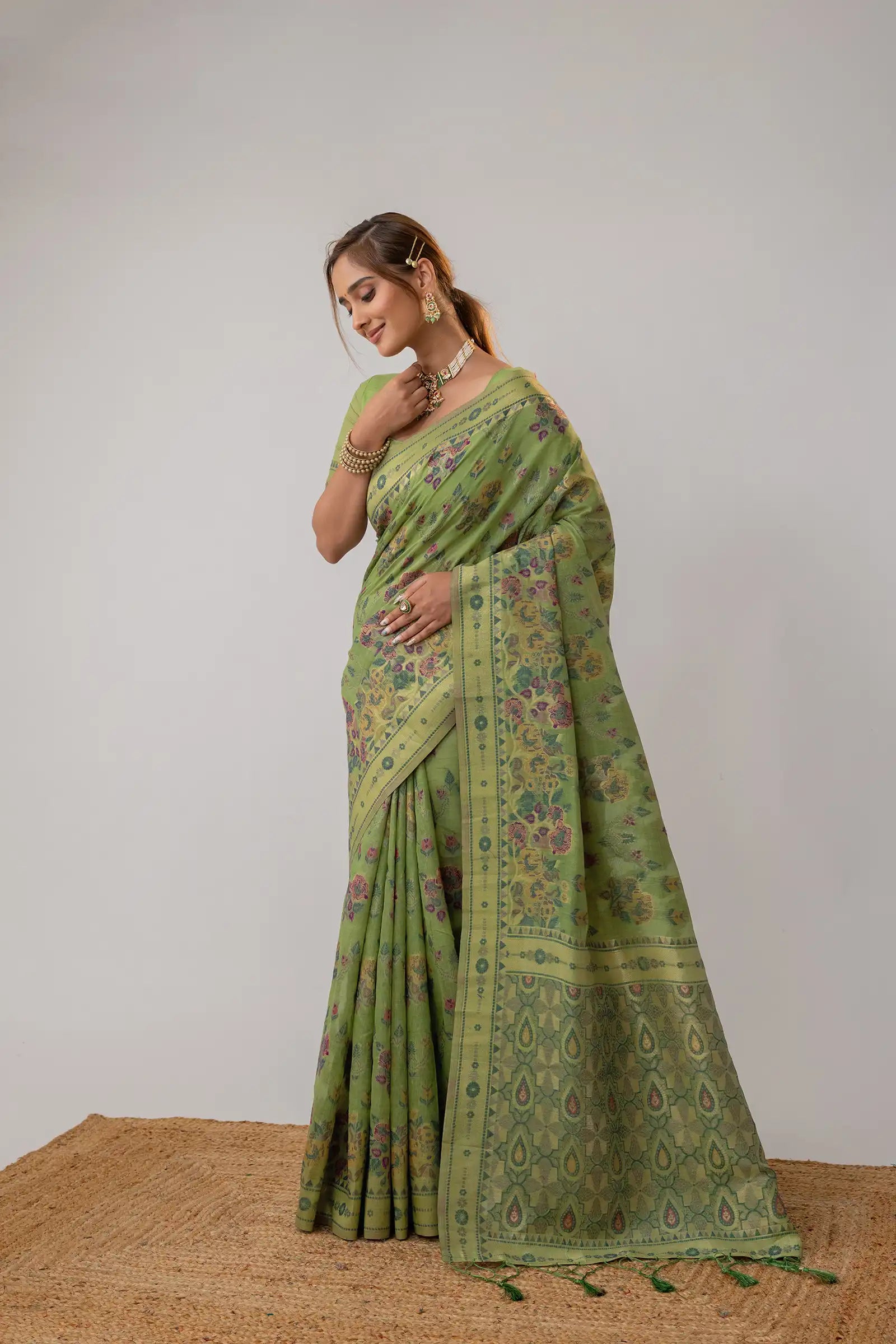 Many of our collections feature handwoven and handcrafted sarees made by local artisans using traditional techniques passed down through generations.