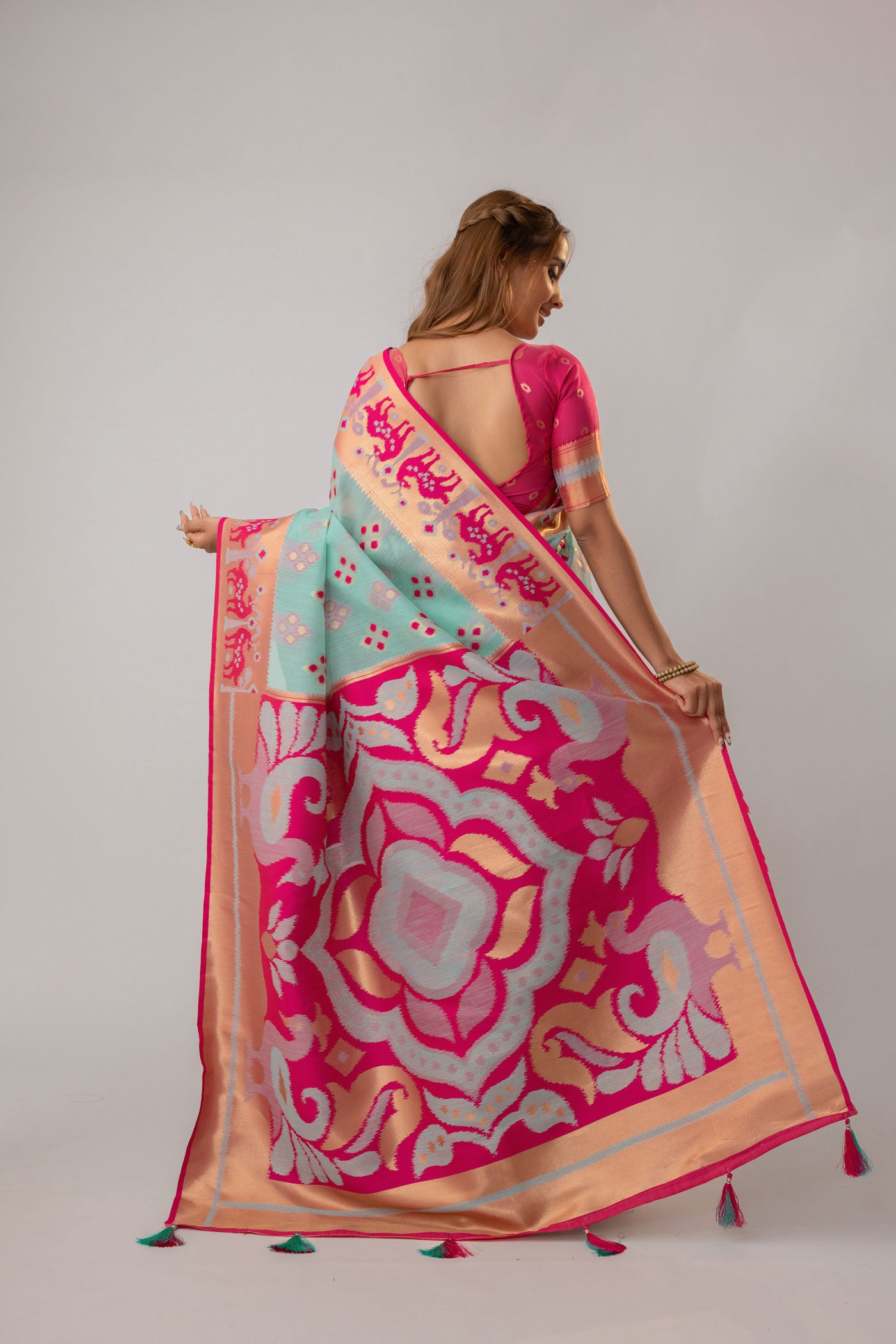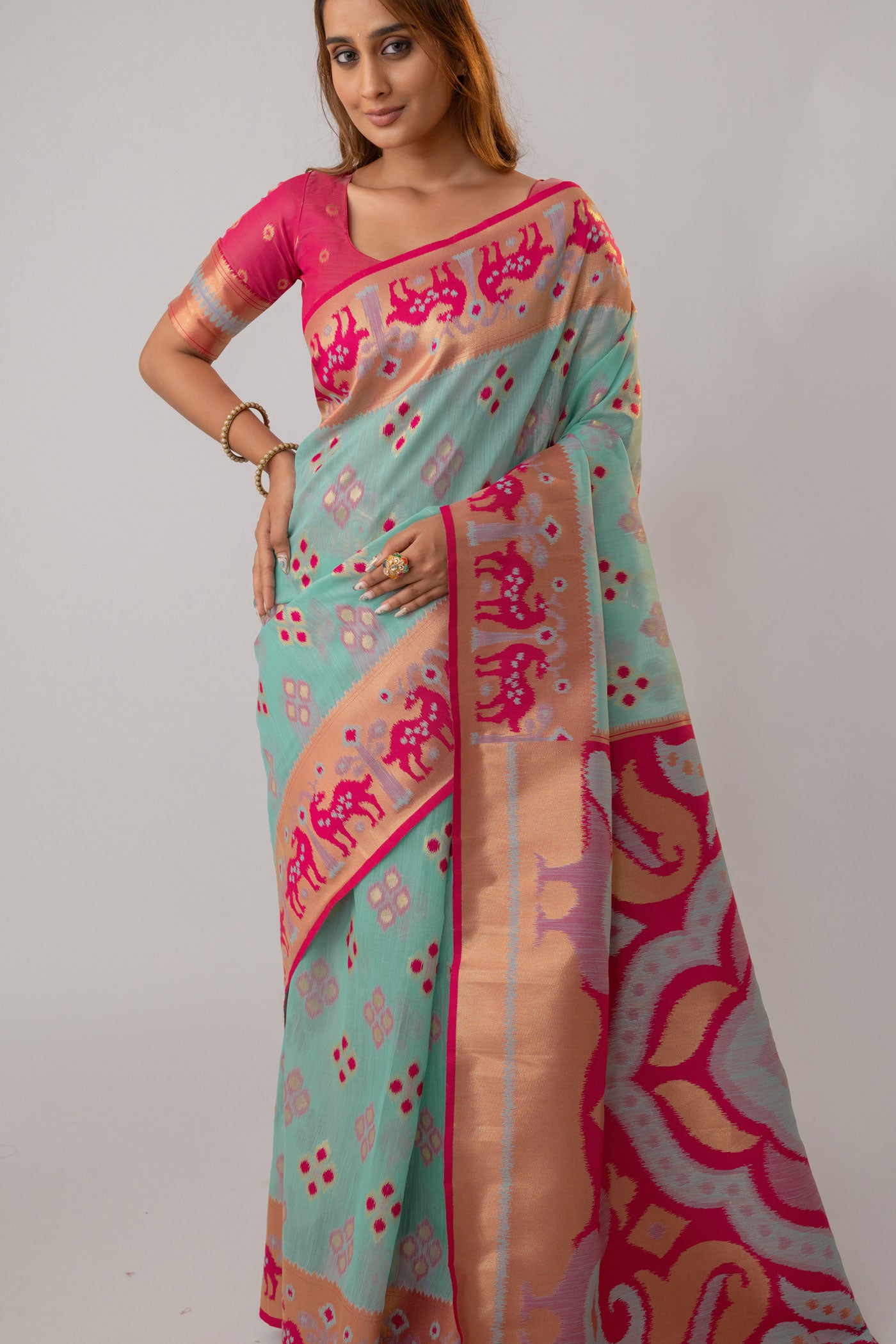 Yes, most of our sarees include a matching or contrast blouse piece. Details are mentioned in each product description.