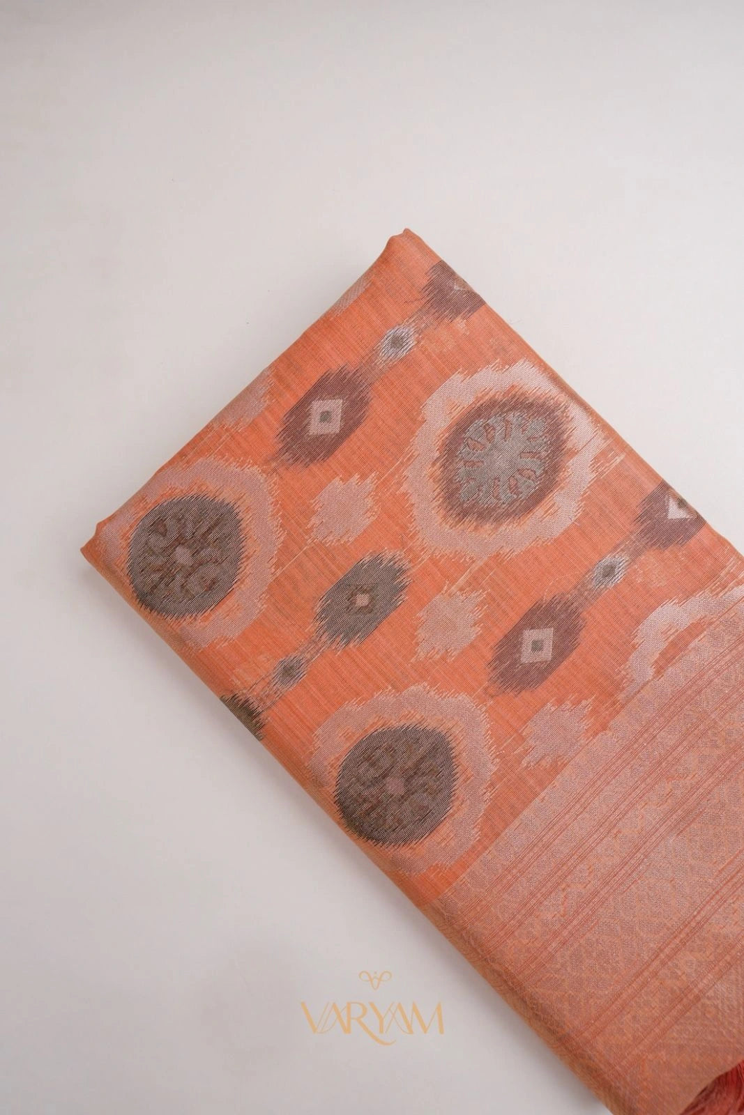 Ikkat Cotton Orange Saree