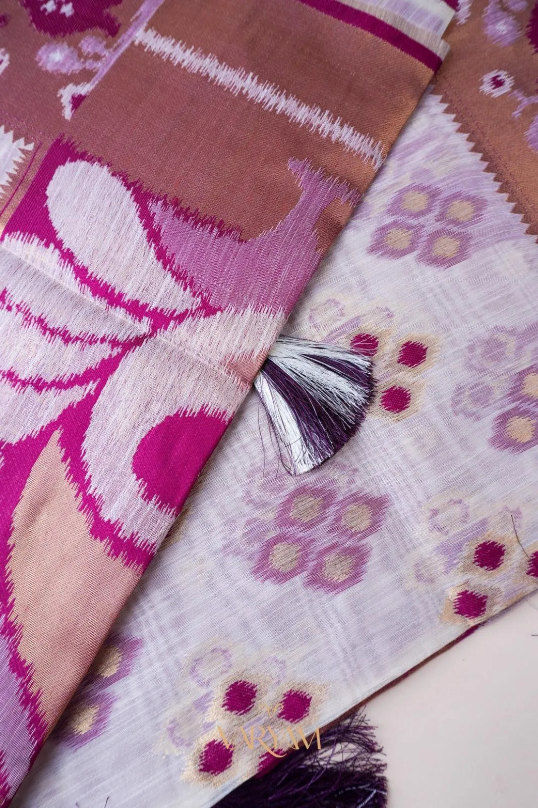 Patola Linen Cream Purple Saree