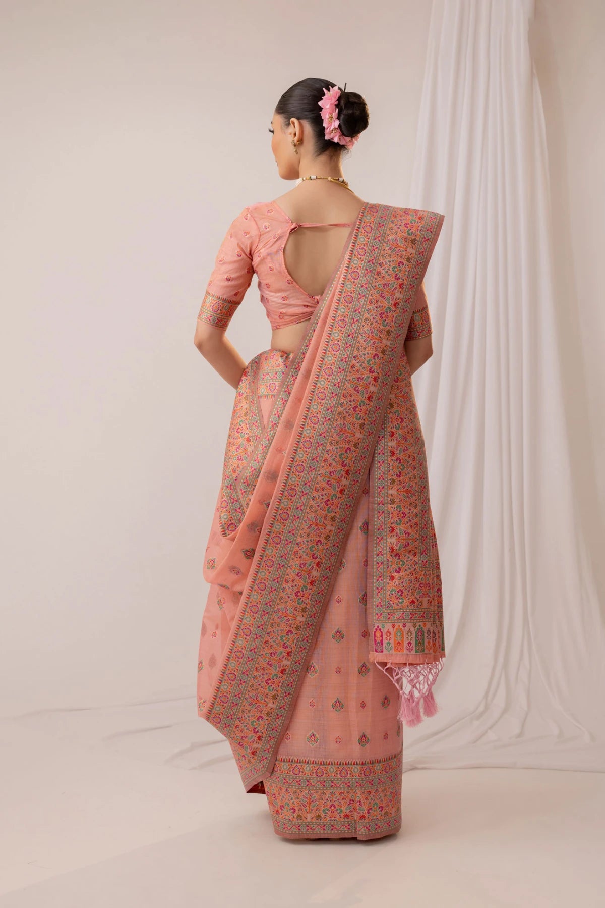 Many of our collections feature handwoven and handcrafted sarees made by local artisans using traditional techniques passed down through generations.